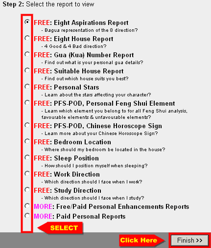- Next is to select the report to generate. In this case, select the Bedroom Location Report and click FINISH.