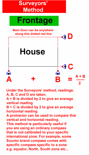 Take the reading from point A (where you were standing) to the main door. That degree you obtain will be the Main Door of your house. Or the Facing of your house.